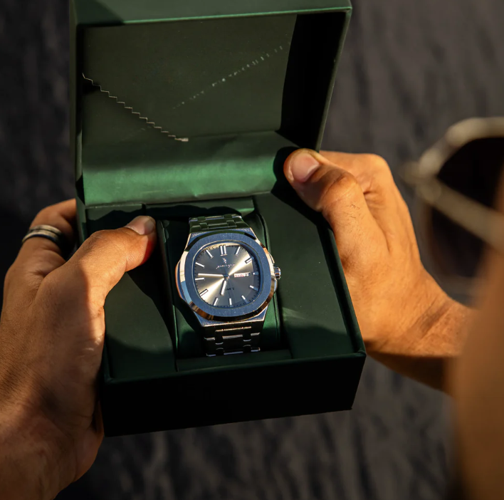 Ogni orologio della nostra collezione è realizzato con cura meticolosa utilizzando materiali come l’acciaio inossidabile 316L, identico a quello usato dai migliori marchi di orologi, garantendo sia durata che un’eccellente resistenza all’acqua. I nostri orologi vantano casse e guarnizioni completamente impermeabili, incarnando il massimo del lusso duraturo.